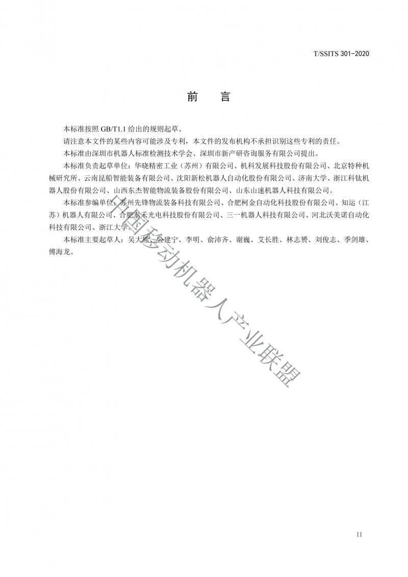 本標(biāo)準(zhǔn)參編單位∶,蘇州先鋒物流裝備科技有限公司、合肥柯金自動化科技股份有限公司、知運(yùn)(江蘇)機(jī)器人有限公司、合肥余禾光電科技股份有限公司、三一機(jī)器人科技有限公司、河北沃美諾自動化科技有限公司、浙江大學(xué)。?