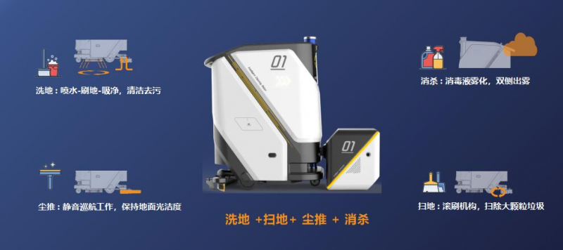搭載安思疆原深相機模組的云象洗地機器人,同時還應用于杭州未來科技城醫院,完成自動呼梯、自動乘梯、區域回字清潔消毒、充電換水全自動等功能。