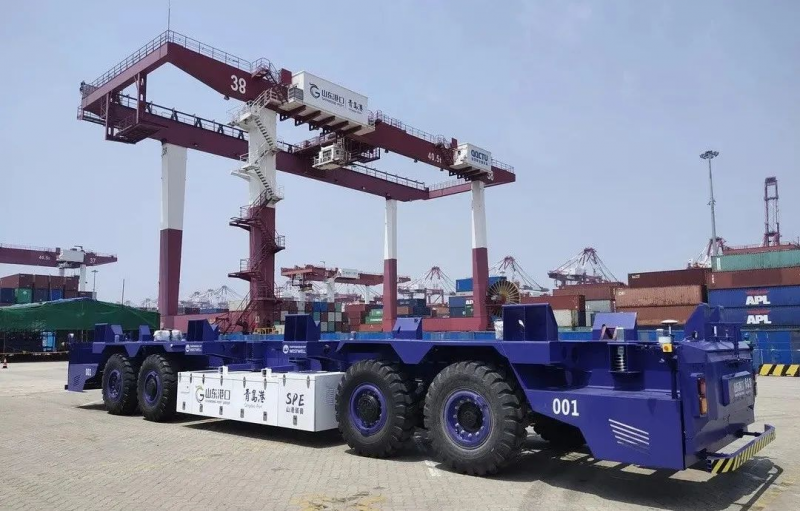 在天津港北疆港區,徐工集團聯合主線科技打造的ART已交付76臺并投入運營。車輛采用4軸8輪底盤系統,實現全輪驅動和轉向,具有轉彎半徑更小、操作更靈活、控制更精準的優勢;此外,輕量化設計理念,使其總重量僅23噸,降低了設備運行能耗。