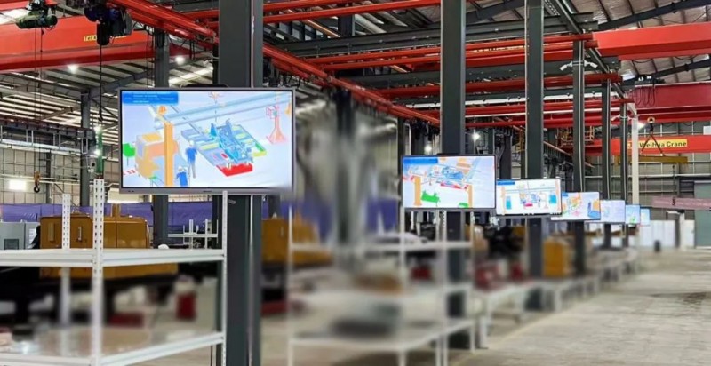 印尼工廠是中國工程機械行業首家海外“燈塔工廠”,項目占地面積十萬平方米,總投資2億元。印尼工廠AGV柔性裝配系統通過AGV/RGV等設備,成功構建現代化柔性生產流水線,可有效利用空間,提高生產效率,根據生產需要快速調整生產流水線布局,滿足多機型柔性生產需要。