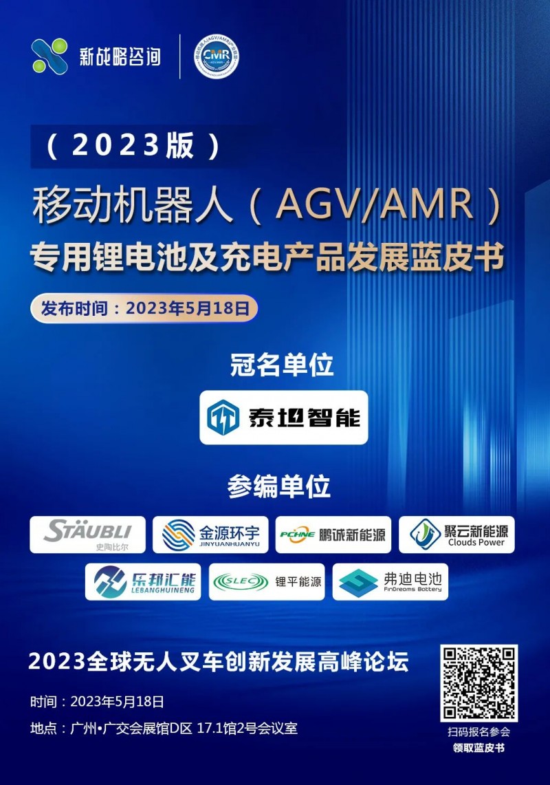 為了更好地解讀當(dāng)前AGV/AMR市場鋰電池及充電產(chǎn)品相關(guān)應(yīng)用情況及趨勢,5月18日,由CMR產(chǎn)業(yè)聯(lián)盟及新戰(zhàn)略移動機(jī)器人產(chǎn)業(yè)研究所主編,廣東泰坦智能動力有限公司冠名發(fā)布,史陶比爾(杭州)精密機(jī)械電子有限公司、河南金源環(huán)宇儲能技術(shù)有限公司、深圳市鵬誠新能源科技有限公司、蘇州聚云新能源科技有限公司、樂邦新能源(天津)有限公司、上海鋰平能源科技有限公司、深圳比亞迪鋰電池有限公司/弗迪電池等企業(yè)聯(lián)合參編的《移動機(jī)器人(AGV/AMR)專用鋰電池及充電產(chǎn)品發(fā)展藍(lán)皮書(2023版)》將在“