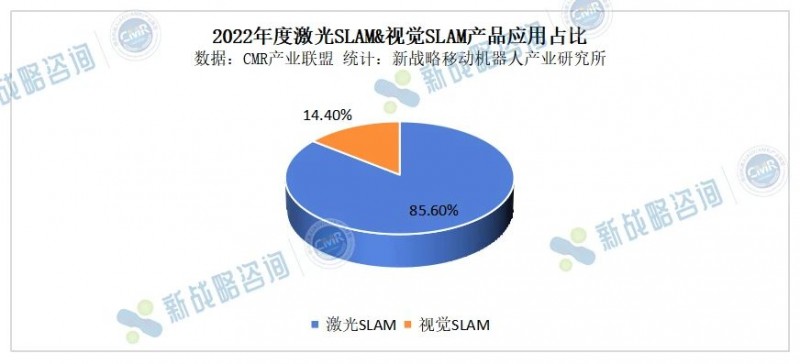 即“自主移動機(jī)器人”)是工業(yè)應(yīng)用移動機(jī)器人的一個(gè)品類,主要指應(yīng)用在工業(yè)制造及物流領(lǐng)域的自主移動機(jī)器人,主要包含激光SLAM和視覺SLAM兩種技術(shù)路線。2022年AMR落地規(guī)模不斷擴(kuò)大,主要集中在工業(yè)制造領(lǐng)域,相對于倉儲物流,工業(yè)制造對于移動機(jī)器人產(chǎn)品的柔性化程度要求相對較高,因此也更偏好無軌導(dǎo)航的AMR產(chǎn)品。根據(jù)聯(lián)盟預(yù)測,未來三年內(nèi),AMR機(jī)器人將在整個(gè)工業(yè)移動機(jī)器人市場中占比有望超過50%,真正實(shí)現(xiàn)智能化的移動機(jī)器人應(yīng)用。市場格局方面,目前國內(nèi)超過85%的AGV本體企業(yè)都擁有自然導(dǎo)航類產(chǎn)品,且企業(yè)數(shù)量還在不斷增多中,這其中有專注于自然導(dǎo)航產(chǎn)品的企業(yè),也有傳統(tǒng)的AGV、倉儲機(jī)器人廠商及物流集成商等,主要代表廠商有鐳神智能、迦智科技、優(yōu)艾智合、藍(lán)芯科技、新松機(jī)器人、斯坦德、玖物互通、極智嘉、海康機(jī)器人、未來機(jī)器人、曠視科技等企業(yè)。從技術(shù)方向來看,AMR目前主要是依靠SLAM技術(shù)來實(shí)現(xiàn),SLAM技術(shù)根據(jù)其使用的傳感器的不同又分為激光SLAM和視覺SLAM。根據(jù)CMR產(chǎn)業(yè)聯(lián)盟數(shù)據(jù),新戰(zhàn)略移動機(jī)器人產(chǎn)業(yè)研究所統(tǒng)計(jì),2022年,落地的AMR中,激光SLAM產(chǎn)品占比為85.6%,視覺SLAM產(chǎn)品占比為14.4%。激光SLAM由于應(yīng)用早,當(dāng)前技術(shù)已經(jīng)相對比較成熟,是應(yīng)用主流,視覺SLAM由于起步稍晚,應(yīng)用也相對滯后,但近兩年應(yīng)用也在逐漸增多。