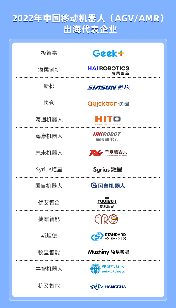 從2019年中國AGV/AMR海外銷售額首次突破10億人民幣到2022年的36億人民幣,不少企業(yè)的海外銷售占比得到較大提升,這也表明走向國際市場成為行業(yè)發(fā)展趨勢,同時中國企業(yè)的產(chǎn)品在全球市場的影響力逐步提升。