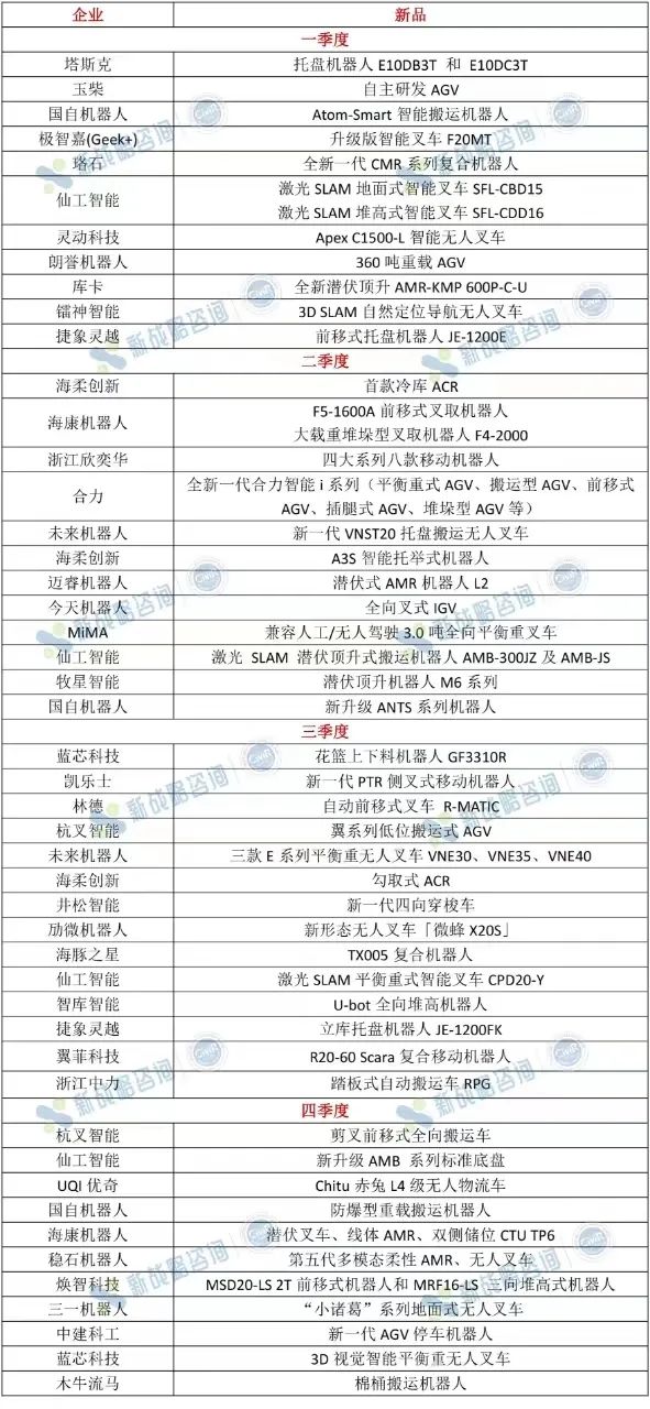 表:2023年AGV/AMR行業新產品(根據公開信息整理,如有未完善之處,請指正?。?/span>