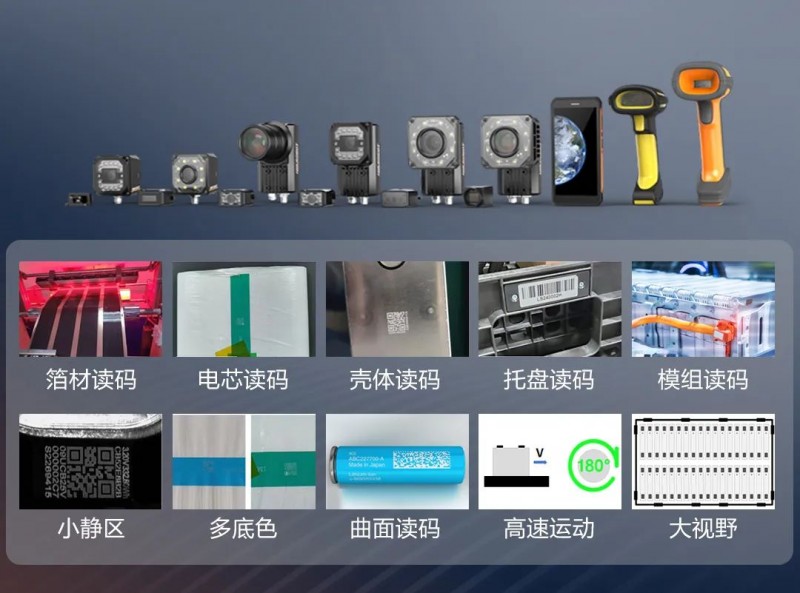 追溯鋰電生產(chǎn)過程是數(shù)智化解決方案的重要一環(huán),海康機器人由此推出了豐富的智能讀碼產(chǎn)品輕松應對多底色讀碼、圓柱電池曲面讀碼、高速運動讀碼、大視野讀碼等復雜場景。