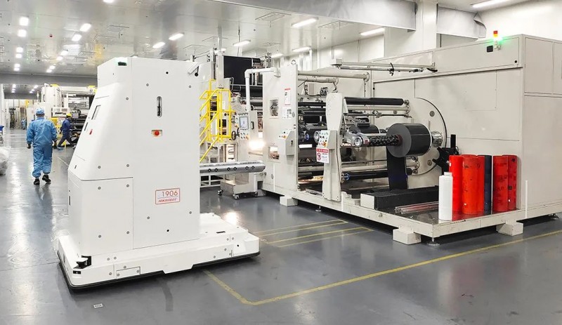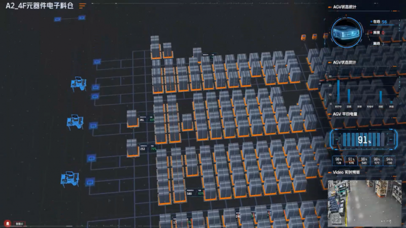 為提高物料流轉效率,海康機器人通過涂布AMR、懸臂AMR、潛伏AMR、叉取AMR、夾抱式CTU進行原材料搬運、極卷搬運、極片搬運、原材料存儲、模組PACK物料上線、PACK環(huán)線裝配,搭配RCS機器人控制系統(tǒng)進行任務分配、調度,實現(xiàn)物料流轉的自動化和智能化。