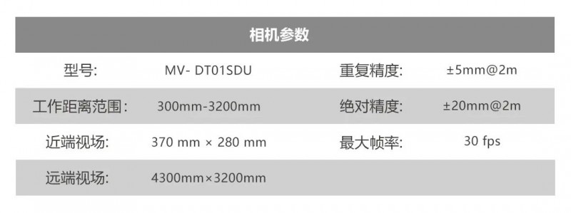 MV-DT01SDU 型號(hào)TOF 感知相機(jī),是一款低成本、小體積、配置全面的立體相機(jī),憑借硬件級(jí)的深度圖像處理方案,可高速同步輸出深度圖及彩色圖,適用于體積測量、識(shí)別、定位等行業(yè)應(yīng)用。