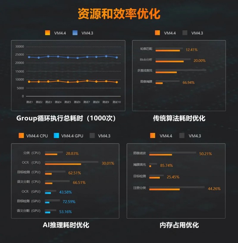 VM4.4對模板匹配、Blob、目標檢測、OCR、圖像處理、讀碼等多個算法工具進行了效率提升和性能優(yōu)化,基于海量工業(yè)場景數(shù)據(jù),推出了通用識別模型,無需二次訓練,能直接滿足大多數(shù)工業(yè)場景的檢測需求。