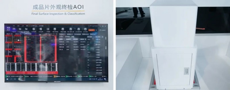 該環(huán)節(jié)還展示了隱裂檢測、鍍膜后AOI、成品外觀終檢AOI、印刷后PL檢測方案。