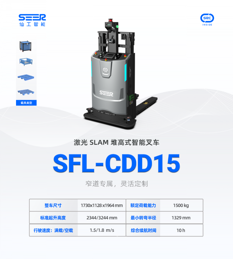 SFL-CDD15 基于林德車體打造,內(nèi)置仙工智能 SRC 控制器,產(chǎn)品競爭力 Next Level。