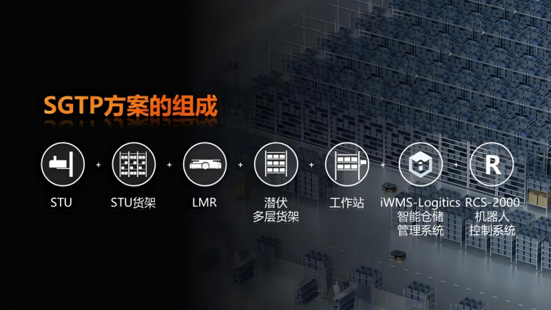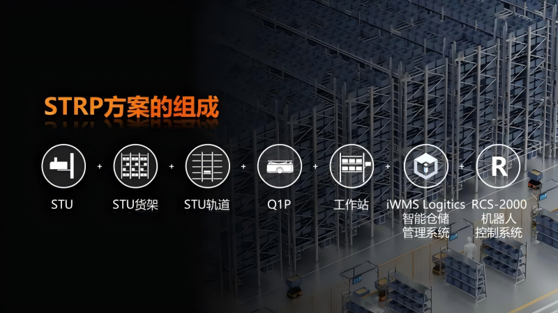 STRP方案核心的由STU+高位貨架+緩存位+Q1P+工作站構(gòu)成,同時搭配iWMS-Logistics 智能倉儲管理系統(tǒng)以及 RCS-2000 機器人控制系統(tǒng)。