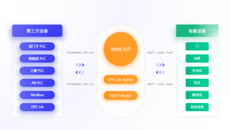 新松移動(dòng)機(jī)器人iMRS平臺(tái)物聯(lián)網(wǎng)模塊(IOT)能快速集成廠區(qū)內(nèi)各種周邊設(shè)備,提供多種主流的連接方式,將設(shè)備邏輯信號(hào)進(jìn)行二次抽象轉(zhuǎn)換為易于理解的對(duì)應(yīng)設(shè)備動(dòng)作,完成從邏輯信號(hào)向現(xiàn)實(shí)動(dòng)作的轉(zhuǎn)換,實(shí)現(xiàn)真正的全場(chǎng)景萬物互聯(lián)。