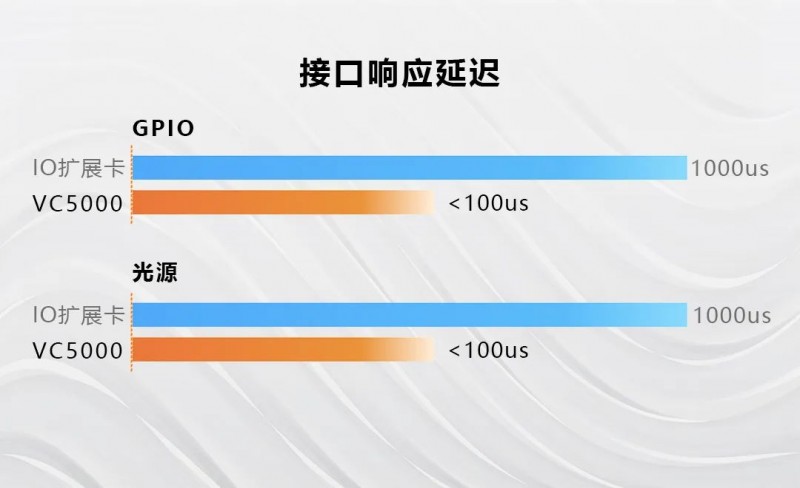 采用高速IO /光源接口,滿足高速視覺處理時序要求,精準(zhǔn)收發(fā)信號,控制更高效,接口響應(yīng)速度可達(dá)100us以內(nèi)。