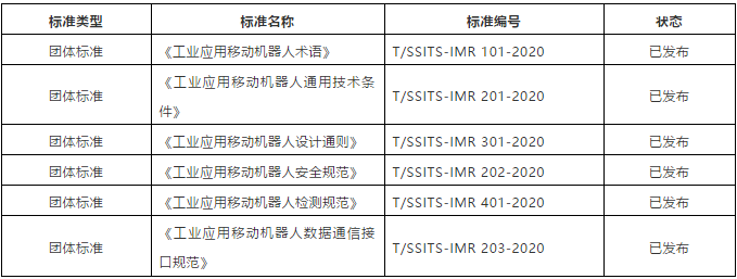 圖表:移動機器人產(chǎn)業(yè)聯(lián)盟制定的6項團體標準(標準索取電話:18503004176)