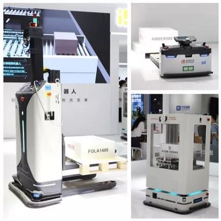 迦智科技智能無人叉車FOLA-1400-CDD(左),輕量級激光SLAM地面式自動叉車AMBER 500(右上),高精度側(cè)叉物料取放機(jī)器人(右下)