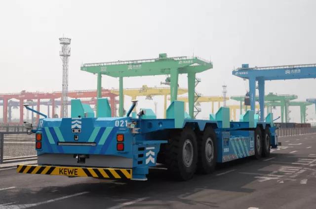 人工智能運輸機器人載重65噸,最高速度35千米/小時,可裝載20尺、雙20尺、40尺、45尺標準集裝箱,不僅是為智能化集裝箱碼頭生產開發的全天候水平運輸新產品,還可為全球傳統集裝箱碼頭改造升級為自動化、智能化碼頭提供全新的技術解決方案。