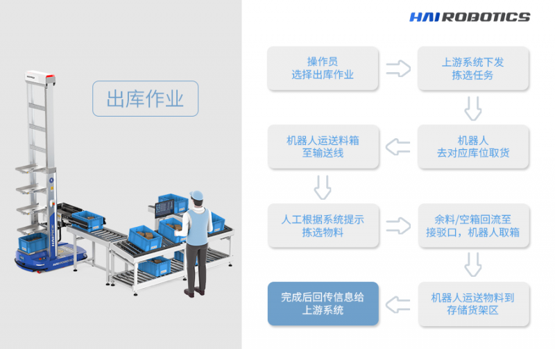 出庫(kù):采用輸送線工作站的方式,提高出庫(kù)揀選友好性,提高響應(yīng)速度。