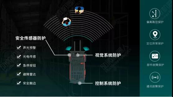 平衡重式無人叉車MW-E系列安全系統(tǒng)采用安全傳感器、算法控制系統(tǒng)、視覺系統(tǒng)等多重防護去提升車輛安全,即從人體工程學等多方面去考慮人機交互場景的安全性,又從無人叉車系統(tǒng)、機械等方面去考慮,360°全方位立體防護,讓無人叉車作業(yè)安全更具保障。