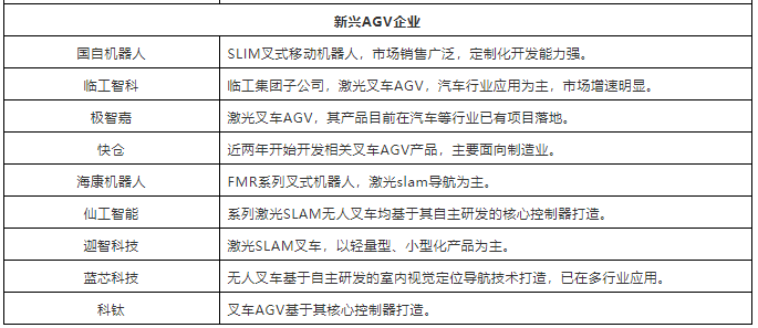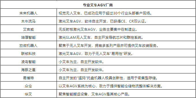 表:中國市場40+叉車AGV企業(yè)(排名不分先后,企業(yè)分類以其主營業(yè)務(wù)為依據(jù))