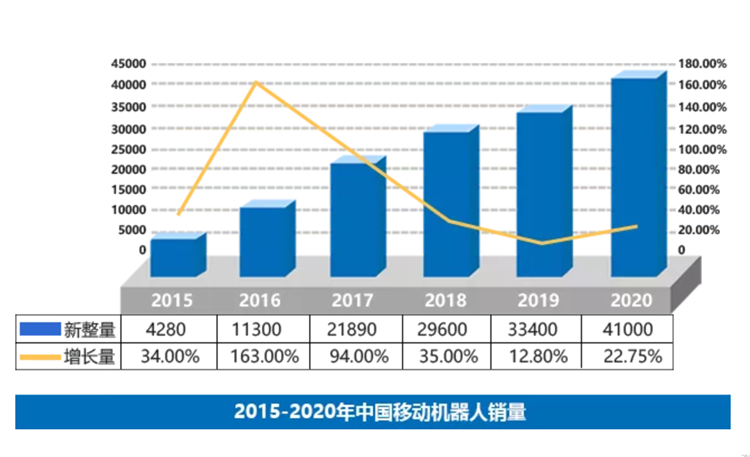 根據新戰略機器人產業研究所統計,中國移動機器人近三年的累積銷量已經超過10萬臺,中國工業應用移動機器人2015~2020年銷量如下圖