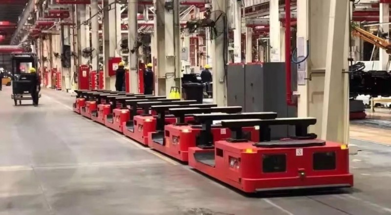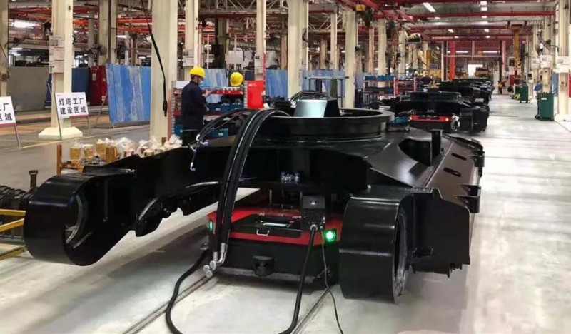 25臺(tái)重載AGV——國(guó)自助力某大型挖掘機(jī)工廠打造柔性產(chǎn)線!