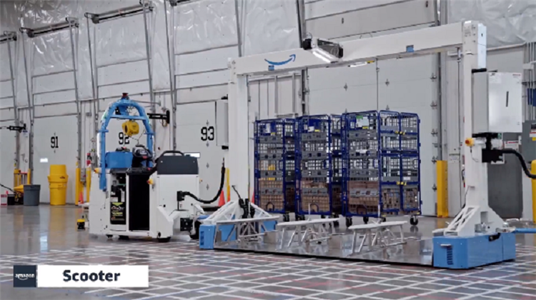 Kermit 相比于 Scooter 體型更小,會跟隨地面特制的布線運行,來運送儲物筐。亞馬遜表示,今年至少將會在北美的十幾個站點部署 Kermit,同時也將嘗試著對 Scooter 進行極少量的部署運作。