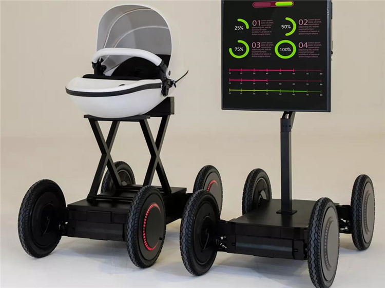 現(xiàn)代公司公布了其新產(chǎn)品:一個四輪機器人,該模型被稱為MobED,并顯示支持一個嬰兒座椅和一個垂直顯示器。MobED采用簡單的長方形平臺設(shè)計,附以四個可作多角度轉(zhuǎn)向的車輪,而每個車輪都配上獨立的避震懸掛系統(tǒng),配合 12 吋輪胎,可應(yīng)付不同路面狀況。每個車輪又配有 3 個獨立摩打,除了提供動力,也控制其轉(zhuǎn)向,以及控制整部小車的行走姿勢。MobED 車身長 67cm、闊 60cm、高 33cm、重 50kg,其最高速度達 30km/h,當(dāng)充滿電時可連續(xù)行駛 4 小時。